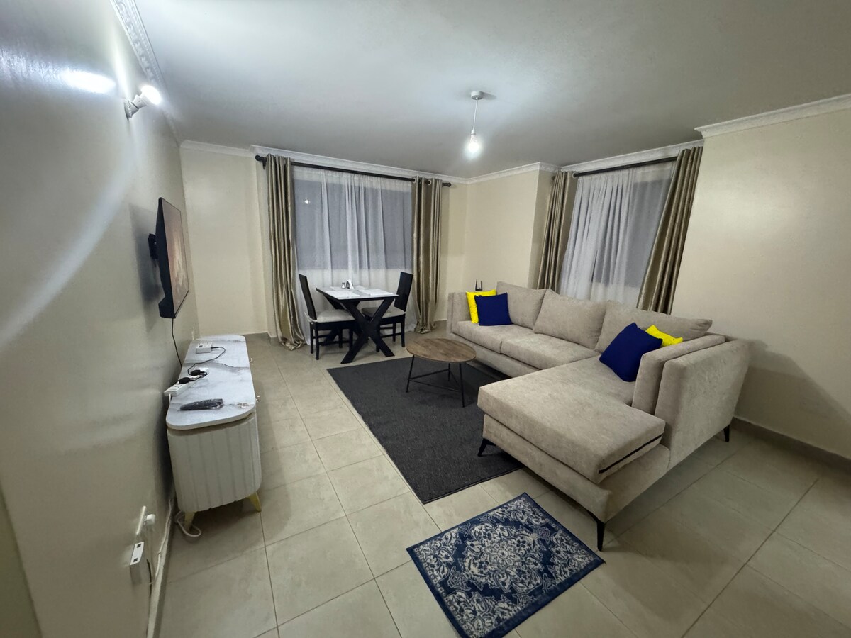 One bedroom apartment in AlphaOne Apartments that guarantee a modern, peaceful and spacious feel.MySpacebyAlpha one is fully serviced,well light at the top floor of the building with some custom made furniture.Ample parking is available within the building with 24hr security inclusive of a perimeter wall and electric fence.A sofa bed is also available