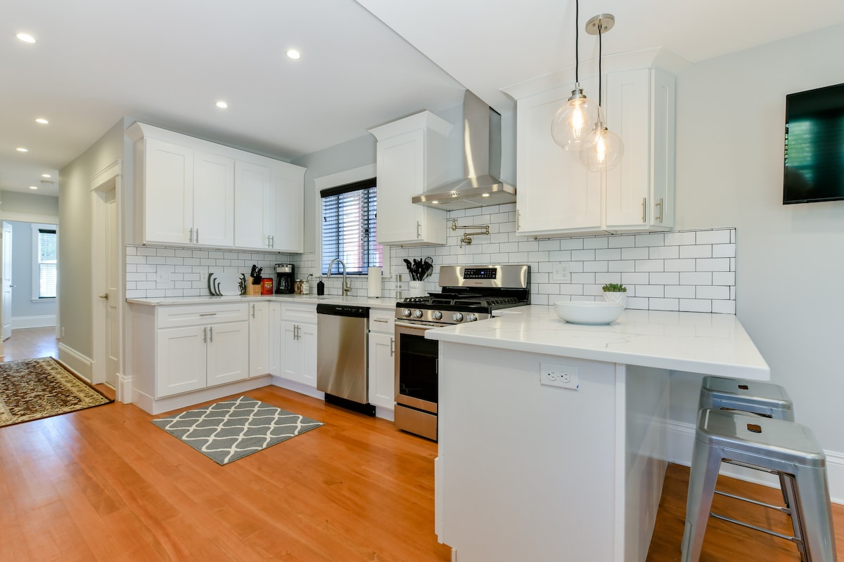 Apartamento aconchegante de 2 quartos em casa histórica encantadora da década de 1920 com banheiro original e madeira original por toda parte, atualizado com comodidades modernas. Desfrute de uma incrível noite de sono em novos colchões de luxo cobertos com lençóis estilo hotel, travesseiros dos sonhos e edredons aconchegantes. Prepare o jantar na cozinha totalmente abastecida. Um curto passeio de Uber ou metrô para Boston. Perto do Encore Casino, Assembly Row; e localizado centralmente para viagens de um dia a Salem, o mar ou os lagos e montanhas de NH.
