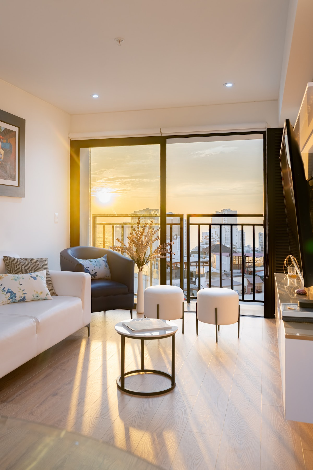 Nós nos apaixonamos por este condomínio no topo do penhasco de Miraflores depois de ficar em muitos Airbnbs em Lima. 200 m² no 14º andar com vistas completas da costa: assista surfistas e parapentes pelo Parque del Amor e desfrute do pôr do sol sobre o Pacífico. 3 quartos (king + duplo + 2 solteiros), 3,5 banheiros incl. jacuzzi, cozinha totalmente equipada + máquina de lavar louça, lavanderia, Wi-Fi rápido. Edifício seguro com porteiro 24/7, 2 elevadores, check-in fácil. Caminhe até Larcomar, parques Malecón, praia, cafés e os melhores restaurantes.