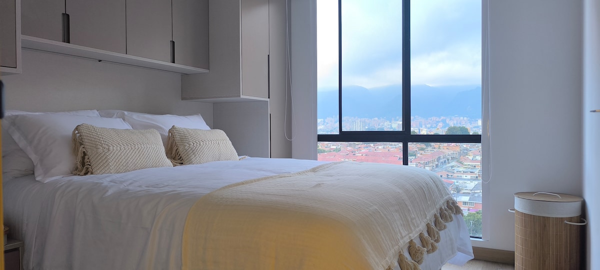 Apartamento totalmente reformado. A apenas 10 minutos do aeroporto de El Dorado e a 10 minutos do Jardim Botânico. Fácil acesso ao transporte público, a estação de transmilenio está localizada em frente ao edifício. O apartamento tem todas as comodidades necessárias para que você tenha uma estadia agradável. Lembre-se de que não há estacionamento. O apartamento tem uma cama Queen no quarto e um sofá-cama na sala.