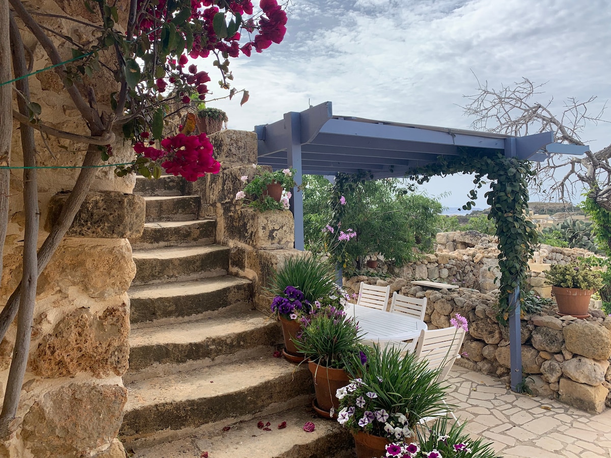 Propriedade autêntica de fazenda/vila de 400 anos de idade (5000 metros quadrados), recentemente renovada para altos padrões. Fica empoleirado em terrenos elevados, com vista completa para o vale/praia de Wied il-Ghasri, o Farol de Ta Giordan, uma antiga capela e o mar. A propriedade tem garagem privada. Os terrenos oferecem tranquilidade completa e vistas incríveis. Galinhas caipiras, galos, alpacas, cabras, gatos amigáveis, 2 pavões, 2 araras de asas vermelhas e 2 macacos vão fazer companhia a você!