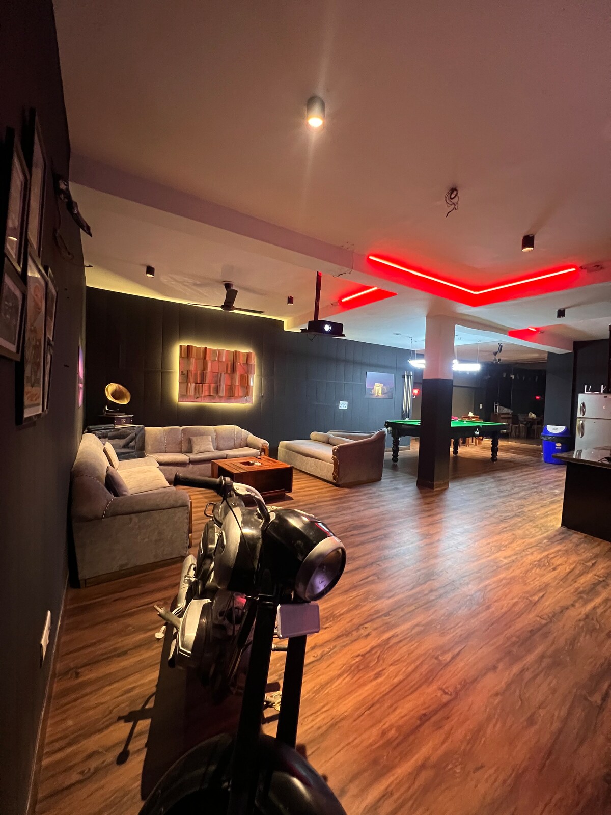 Viva uma experiência única e aconchegante no Cosmic Studio, uma kitnet no subsolo cuidadosamente projetada que combina conforto e entretenimento. O espaço conta com uma área de quarto confortável, uma mesa de bilhar profissional de 8 bolas e uma grande tela de projetor que transforma suas noites em uma experiência de cinema privativo. Os interiores foram projetados com tons escuros e modernos, piso de madeira e iluminação premium aconchegante, criando um ambiente descontraído, mas elegante.
