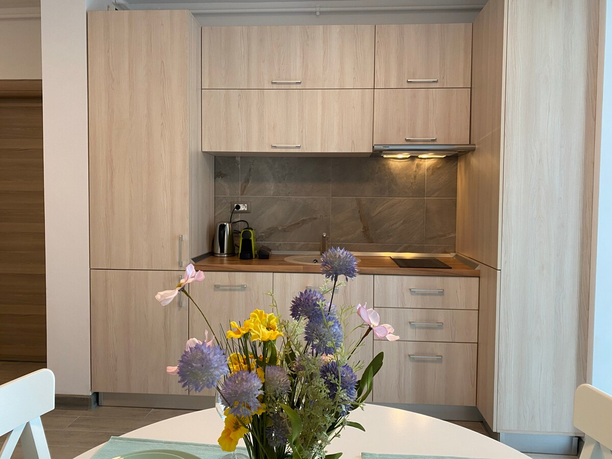 O Erato Apartment está situado no Odyssey by Alezzi Resort (o mais novo resort aberto em 2025). Este aconchegante apartamento de um quarto oferece acomodações para 4 adultos ou 2 adultos e 2 crianças. A distância para a praia é de cerca de 300 metros e a área da praia é uma das mais procuradas no Mamaia Nord Resort. A uma curta caminhada da praia, restaurantes. * Acesso gratuito ao SPA e parque infantil * Acesso gratuito a piscinas durante todo o ano e área de fitness * Wi-Fi e estacionamento gratuitos * Café/Água por nossa conta! * Atendimento 24h