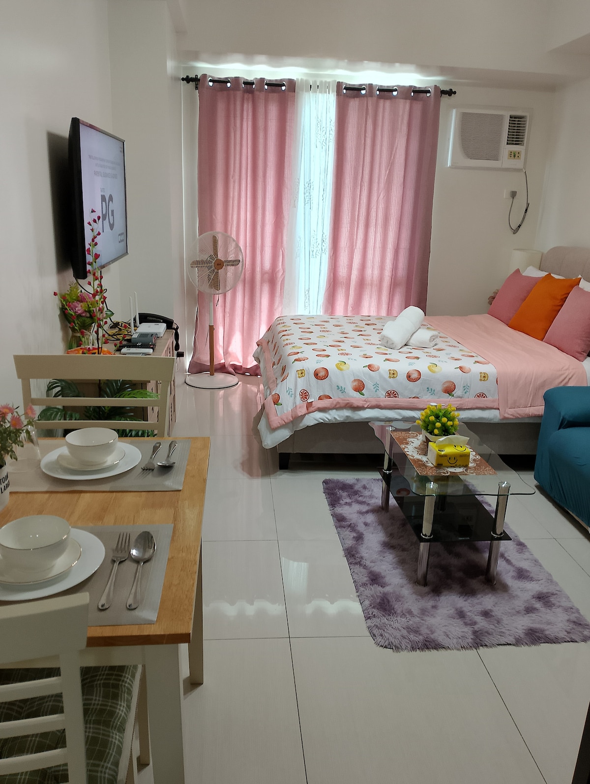 Desfrute do condomínio tropical e refrescante entre os movimentados distritos comerciais centrais de Ortigas e BGC. O Prisma Residences é um condomínio de arranha-céus recém-entregue que oferece conveniência e conforto aos seus inquilinos. Comodidades: Piscina com taxa de P200 (somente de segunda a quarta-feira) Roof Deck Gazeebo Fogão de indução Rangehood Rice Cooker Chaleira elétrica Pratos, copos e xícaras Refrigerador Ar-condicionado de janela de 2 vias Aquecedor de chuveiro Bidê Toalhas Camas completas Internet ilimitada de alta velocidade Netflix Disney + Estacionamento gratuito