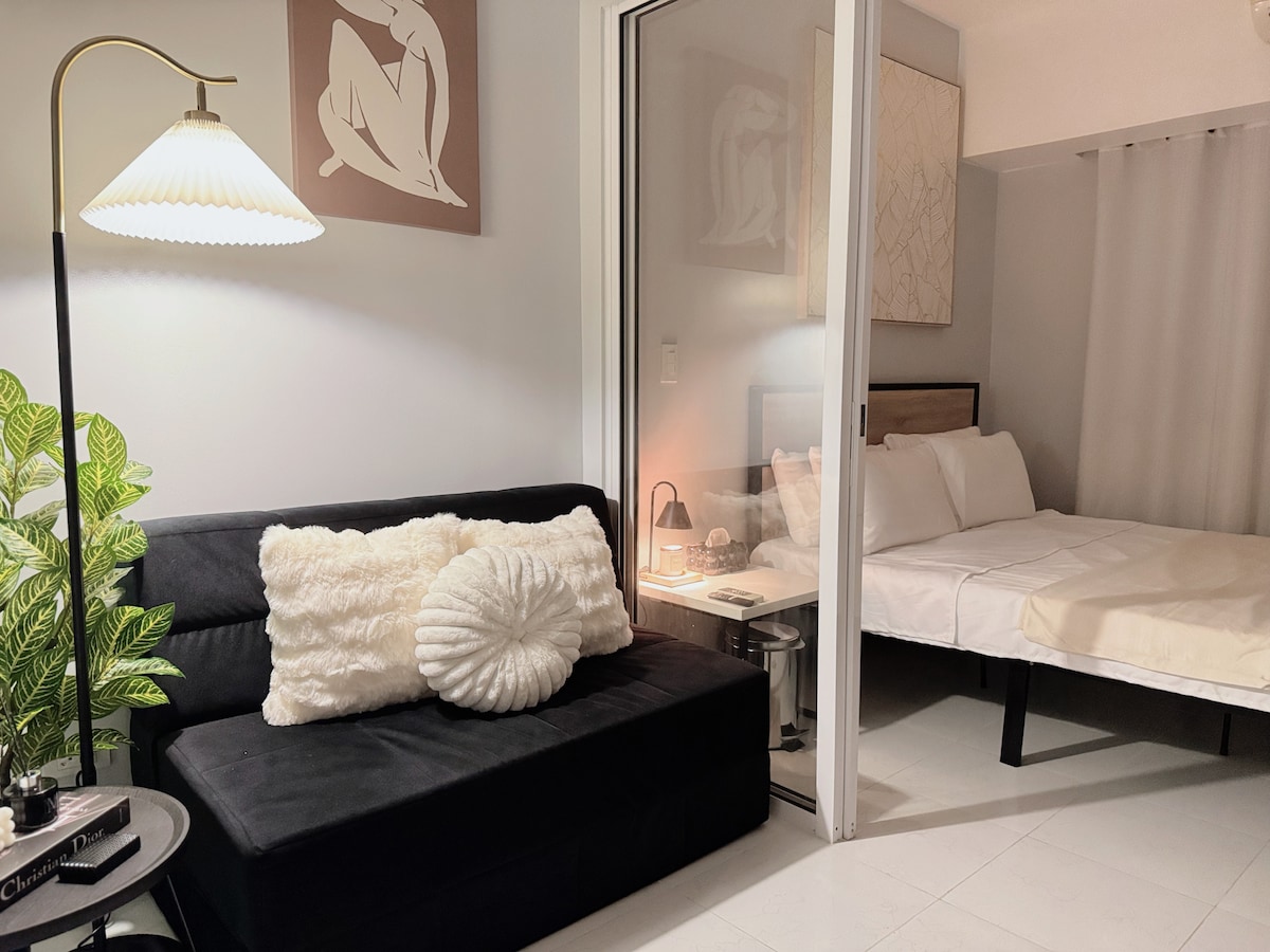 Experimente o máximo em luxo e serenidade em nosso elegante apartamento moderno em Brixton Place, Pasig. Apenas 3-5 minutos de BGC e 10-15 minutos para Makati CBD. Desfrute da varanda privativa ao lado do quarto em nosso espaço aconchegante e sofisticado. Perfeito para solteiros ou casais que procuram uma estadia elegante e tranquila perto de BGC. Comodidades de alta qualidade, cozinha totalmente equipada e ambiente estilo resort farão você se deliciar e relaxar. Com acesso ao terraço, onde você pode desfrutar de vistas deslumbrantes do horizonte. Reserve já!