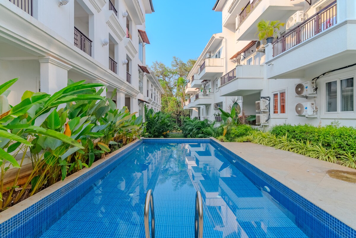 Luxo 1BR com piscina e perto da praia de Baga North Goa