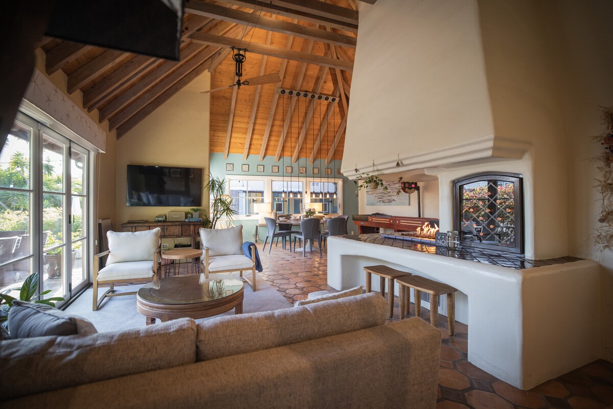 Bem-vindo à minha antiga casa: um 2BD/2BA cheio de luz, a apenas 13 casas da praia e a uma curta distância a pé de restaurantes. O que eu acho especial: vista para o mar da mesa de jantar (onde eu escrevi); rugido do mar de manhã cedo se a ondulação for grande o suficiente; teto de madeira elevada, pisos de madeira, lareira para noites frias, mini-split para outras vezes, a cozinha do chef: (fogão Viking, panelas All-Clad, facas Wüsthof), chuveiro ao ar livre para lavar a areia, estacionamento para 2 carros.