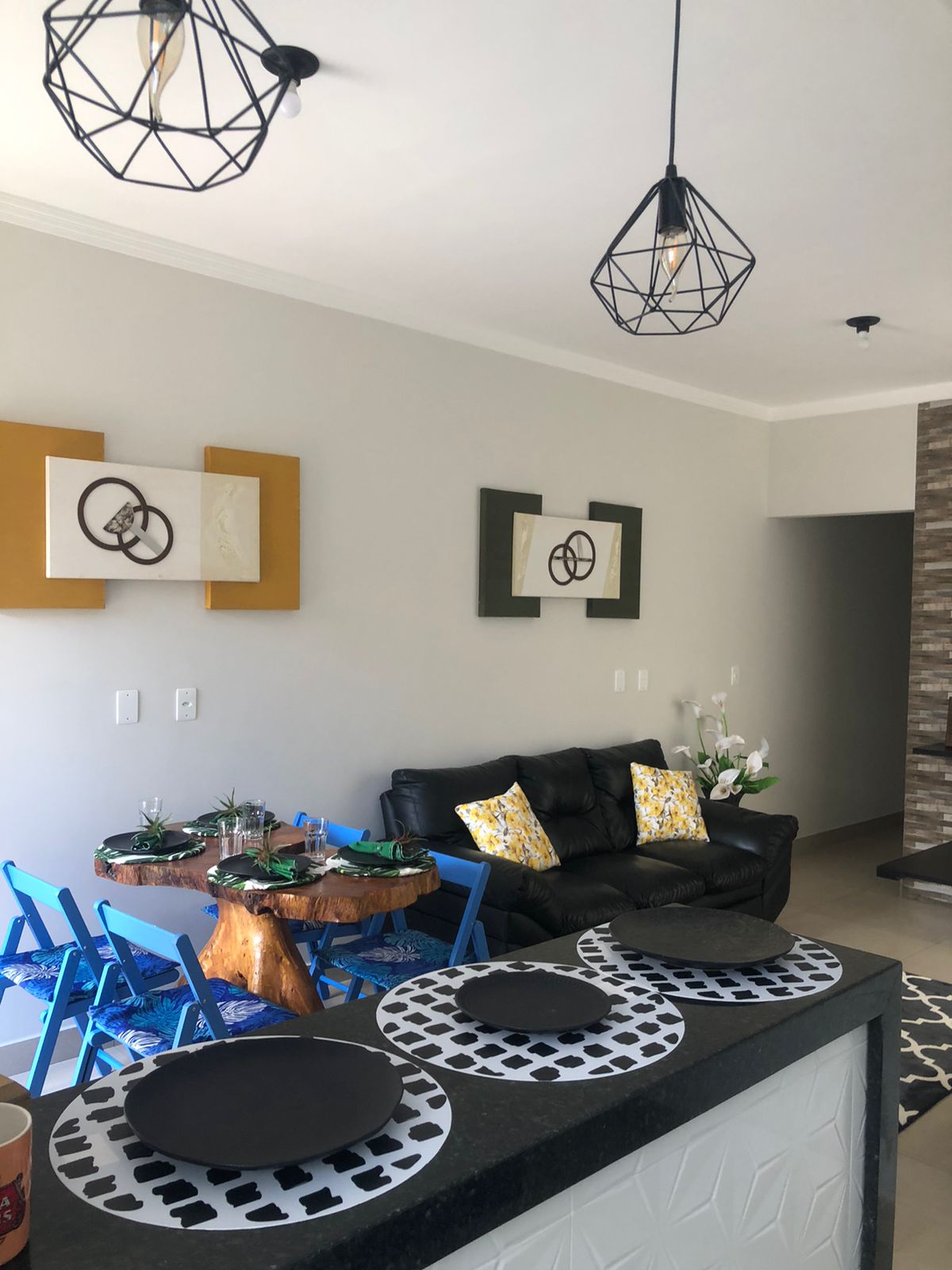 Imóvel novo e moderno! Pensado nos mínimos detalhes desde sua construção para recebê-los. Sala de jantar e de TV em conceito aberto. Cozinha Americana prática, charmosa e equipada com eletrodomésticos novos. Na sala, uma TV de 55 polegadas! Wi-fi e TV a cabo. 1 quarto e 1 suíte c/ camas king, queen e solteiro. Espaço Home Office. Segundo banheiro amplo e completo. Garagem grande, com portão eletrônico. Venha se hospedar com conforto, segurança e estilo! Permitimos fumantes. Seu pet é bem vindo!
