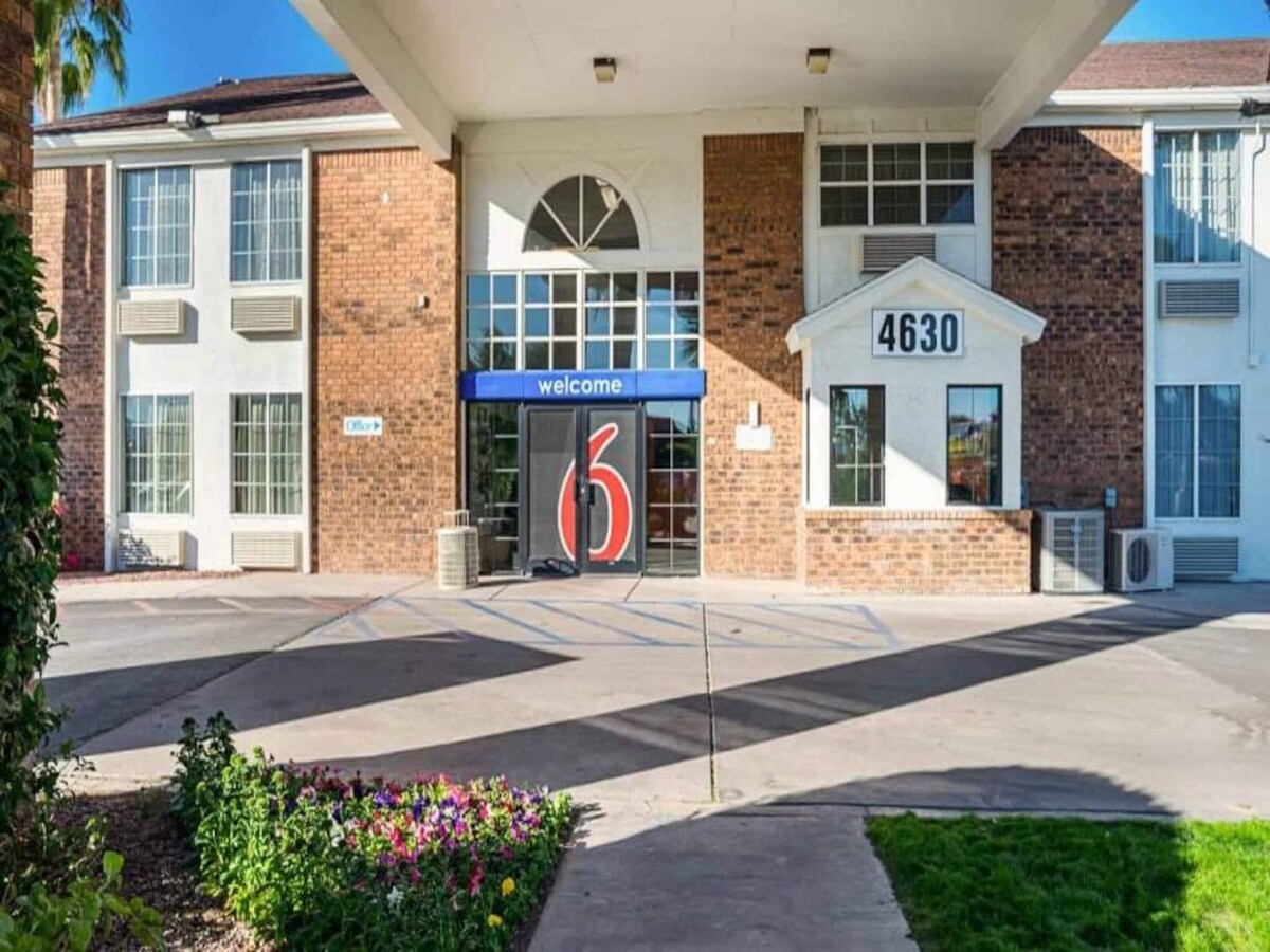 Settle in and stay a while at this clean, budget-friendly king room, perfect for work crews, long-term guests, or road-trippers passing through Tucson. Conveniently located just off I-10, our property makes it easy to get around the city — whether you’re heading to job sites, downtown, or local dining spots. Enjoy a comfortable king-size bed, free Wi-Fi, a flat-screen TV, and an in-room mini-fridge and microwave — everything you need for a simple, stress-free stay.