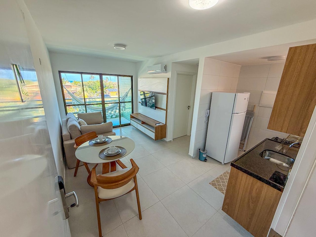 Apto no térreo com 1 quarto, 1 banheiro, cozinha, sala e uma varanda com rede. Estão presentes amenidades como Smart TV 43", cafeteira de cápsulas, forno micro-ondas, internet 200 Mega e Wi-Fi Dual Band. Ótima localização; pertinho da praia, de vários restaurantes, de supermercados e de lojas diversas. O condomínio oferece área privativa com piscina, espreguiçadeiras, mesas, chuveiros e churrasqueira. OBS.: Netflix, PrimeVideo, HBO etc. precisam de usuário e senha do hóspede para funcionar.