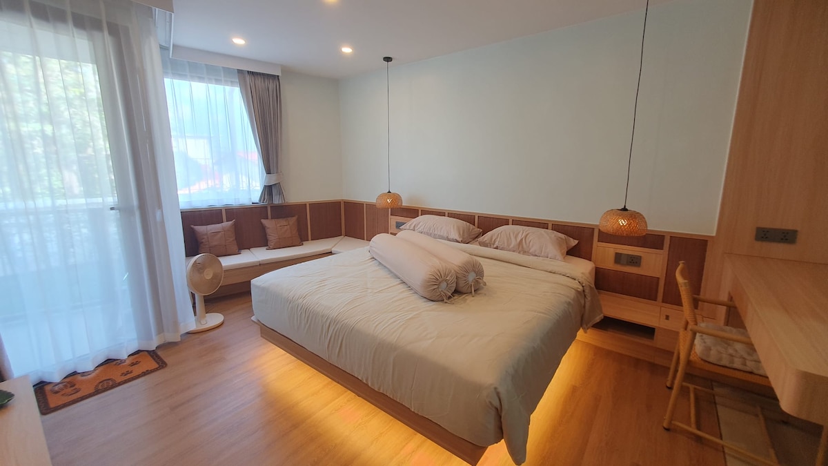 Estúdio luminoso e elegante com vistas deslumbrantes das montanhas no 4º andar, totalmente mobiliado e pronto para viver. Apenas 300m da praia e 80m da rua de pedestres de Lamai. Possui ar condicionado, janelas panorâmicas, cozinha funcional com micro-ondas, fogão, chaleira, geladeira e capuz, piscina, academia com mesa de bilhar e sauna Segurança 24hs O que você deve saber Eletricidade 6 baht/kilowatt Água: 35 bahts por unidade