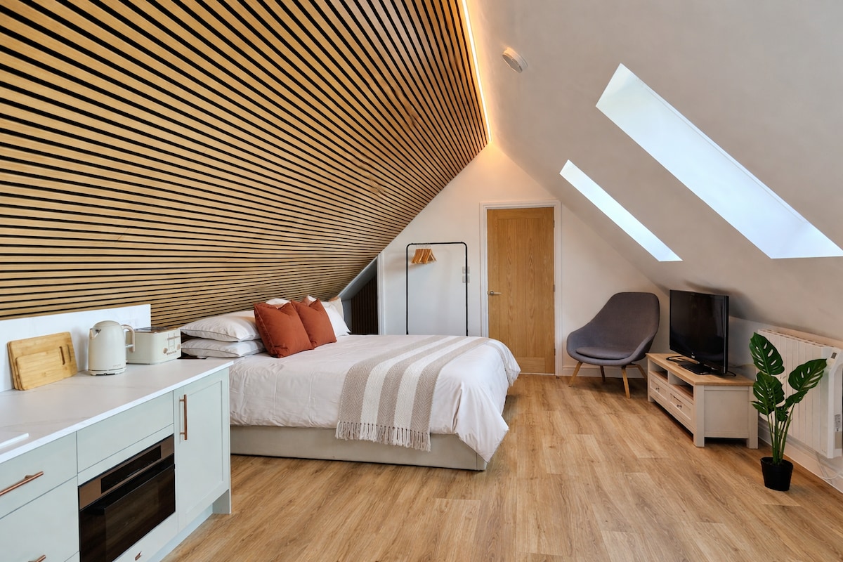 Bem-vindo ao The Oyster Loft, sua escapada chique à beira-mar em Whitstable! Apenas a uma curta caminhada da praia, cafés, restaurantes e estação de trem, este loft elegante oferece a mistura perfeita de relaxamento e conveniência. Situado acima de uma garagem convertida, combina confortos modernos com charme costeiro. Desfrute de um espaço iluminado e arejado com uma cozinha compacta, espaço para refeições, área de dormir e banheiro — perfeito para explorar, relaxar à beira-mar ou assistir ao pôr do sol. Estacionamento seguro gratuito e carregador de carro elétrico estão incluídos.