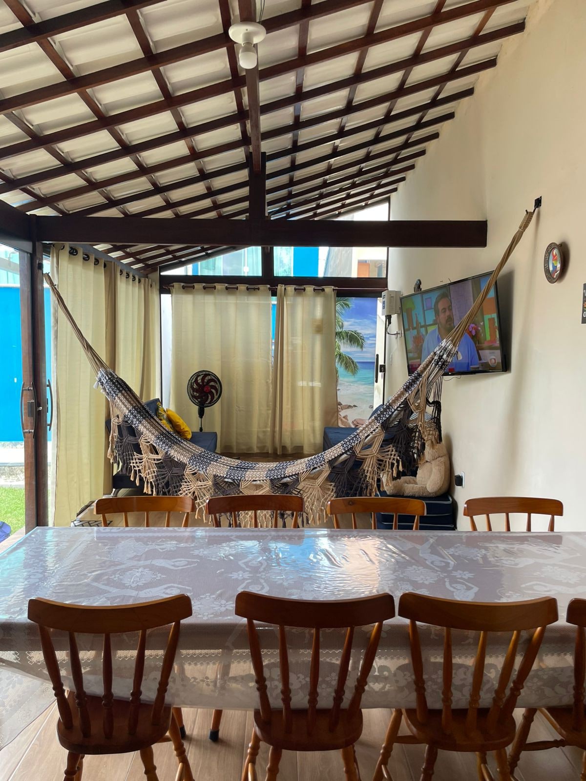 O Recanto das Praias, na bela Região Oceânica de Niterói/RJ, é um anexo completo com acesso independente. Separado da casa principal por um quintal compartilhado, oferece churrasqueira, rede e ducha, perfeito para relaxar. Além disso, os hóspedes têm acesso a uma quadra de futsal, playground e duas piscinas (infantil e adulto). O condomínio é seguro, monitorado por câmeras e funcionários, e fica perto das praias paradisíacas da região, como Itacoatiara e Piratininga.