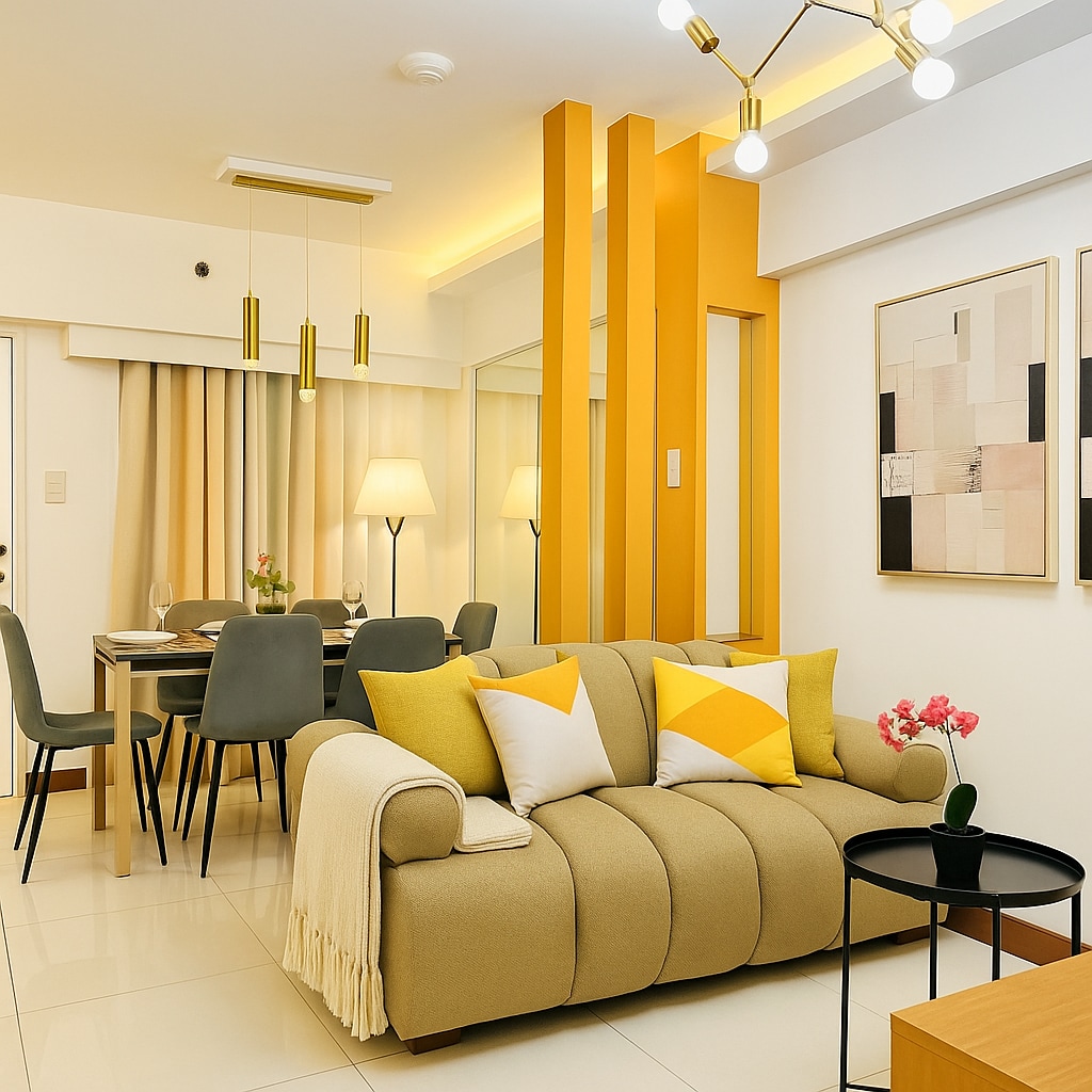 Curta e relaxe com uma experiência elegante neste lugar bem-localizado com entretenimento e vista para Sierra Madre em uma varanda espaçosa. Relaxe com a família e os amigos, pois estamos equipados com Playstation, Karaokê, muitos jogos de tabuleiro e Wi-Fi super rápido. Você também pode assistir Netflix, Disney + e HBO GO. Desfrute de restaurantes e bares populares nas proximidades com fácil acesso a transportes públicos e ao Ever Gotesco Mall Você também pode praticar seu swing, pois estamos do outro lado de um campo de golfe.
