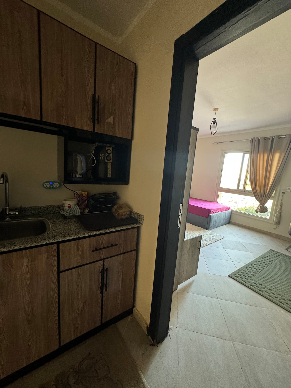 Localização: Aqua View (parque aquático Akoya) antes da marina 10 minutos de carro -2 Quartos - Cozinha-1 banheiro-Balacony (vista para a piscina) - Acesso ao mar (Ahlam Resort) Vista para o mar 2 minutos de carro 100EGP por pessoa