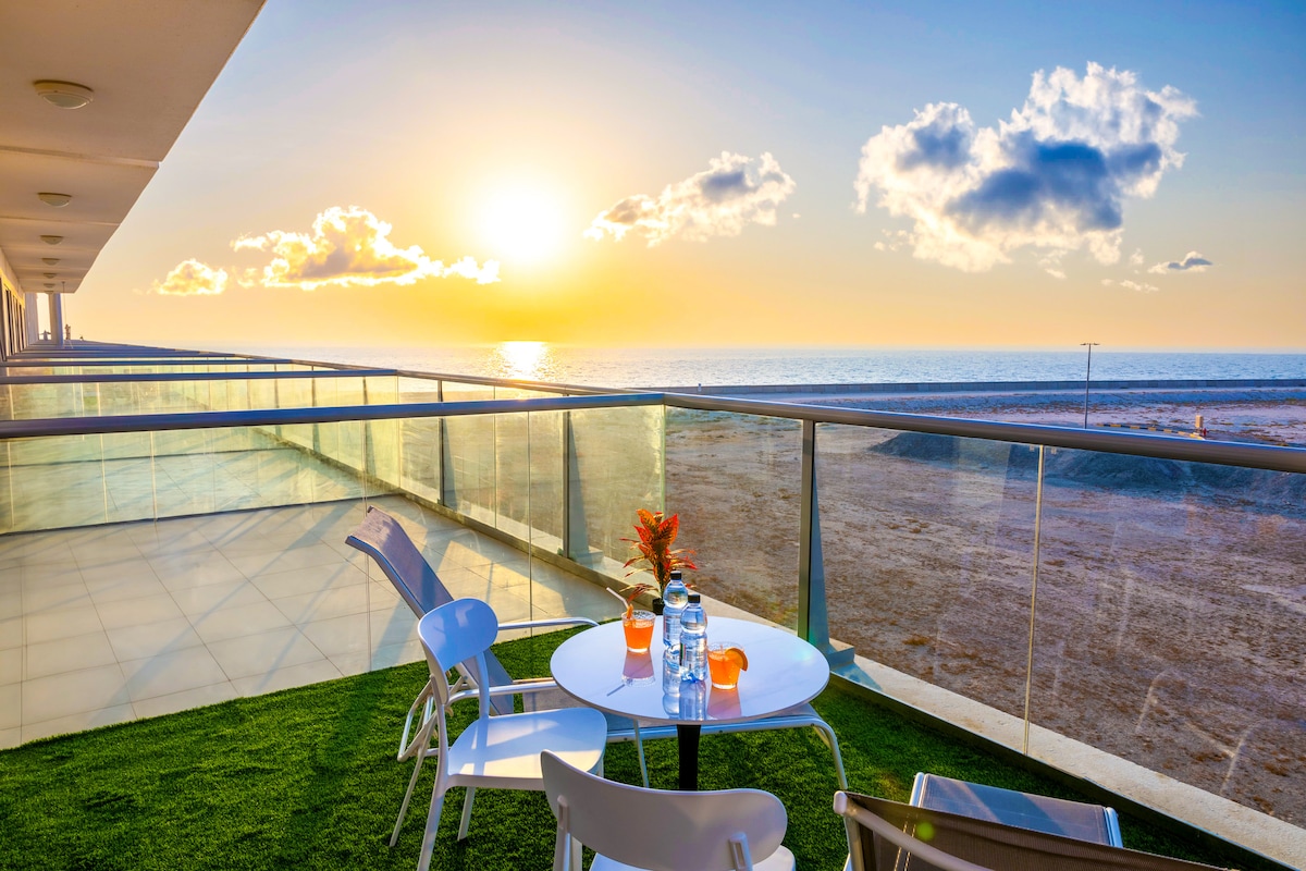 Acorde com vistas deslumbrantes para o mar no melhor edifício da Ilha Marjan Fayrouz, Bab Al Bahr. Perfeito para casais ou famílias, o apartamento dispõe de cama queen size, sofá-cama, colchão extra, Wi-Fi rápido, utensílios de cozinha de cerâmica e toalhas de cortesia. Aproveite as vantagens do resort: piscina, mercearia. Ideal para escapadas curtas e estadias longas à beira-mar.