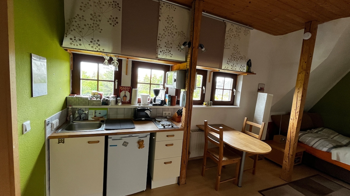 Alugamos um pequeno apartamento na nossa casa de fardos de palha em Markkleeberg. A propriedade tem uma localização tranquila, não muito longe de Markkleeberger See. Você encontrará um apartamento de 1 quarto em uma localização tranquila, com sua própria cozinha e banheiro pequeno. A área ao ar livre convida você a permanecer. Entre galinhas e patos você pode relaxar maravilhosamente. Também muito adequado para crianças e famílias. Vários destinos de excursão no campo possível. 15 minutos de carro até o centro de Leipzig (carro).