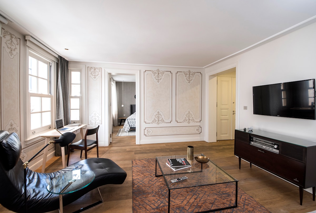 Apartamento luxuoso e espaçoso de 2 quartos com 2 banheiros e uma varanda com uma vista incrível, localizado ao lado do Palácio Dolmabahce, perfeito para suas férias. Pontos turísticos históricos e ruas comerciais são facilmente acessíveis. Você pode chegar à Praça Taksim e ao Porto de Gálata em apenas 7-8 minutos. Você pode ir para a Mesquita Azul e a Grande Áreas de bazar com bonde passando em frente ao apartamento Você pode participar de passeios no Bósforo saindo da estação de balsa Kabatas ou você pode pegar as botas para visitar as Ilhas Princess
