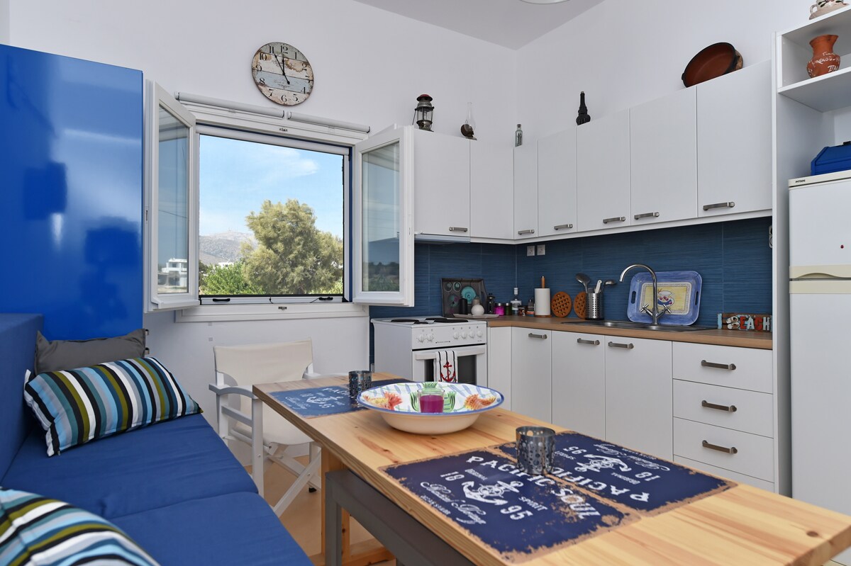 Apartamento térreo de estilo tradicional cicládico, no coração do assentamento de Parikia. Idealmente situado, oferece tranquilidade e relaxamento, e localização central conveniente. Em curta distância: toda a visão interessante (mercado velho, castelo franco), padaria, lojas. O mar fica a poucos metros de distância da casa, e em 2 minutos você pode chegar à rua à beira-mar, onde você pode desfrutar da vista do pôr do sol. O porto, a estação de ônibus e o ponto de táxi ficam a 3 minutos a pé.