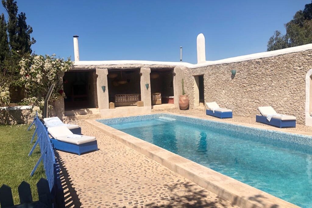 Uma casa autêntica em uma vila rural no campo marroquino, a apenas 32 km de Essaouira. O toque de um casal de arquitetos produziu algumas pequenas melhorias para garantir algum conforto. Uma bela piscina para nadar quase todo o ano. Uma cozinha equipada e um banheiro grande para os três quartos. Um terraço no terraço com vistas deslumbrantes para o campo e um pátio protegido do vento, que completa o charme deste lugar remoto.