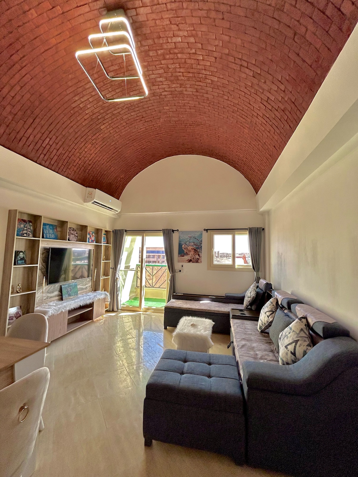 Enjoy the beauty of Marsa Alam in this cozy seaside apartment, just a short walk from the beach. and the warm Red Sea breeze. The apartment is fully furnished, featuring a comfortable bed, equipped kitchen, private balcony, and access to a swimming pool. Perfect for couples or solo travelers seeking peace, sunshine, and adventure. diving, snorkeling, or simply relaxing under the palm trees. Restaurants, shops, and local attractions are all nearby.