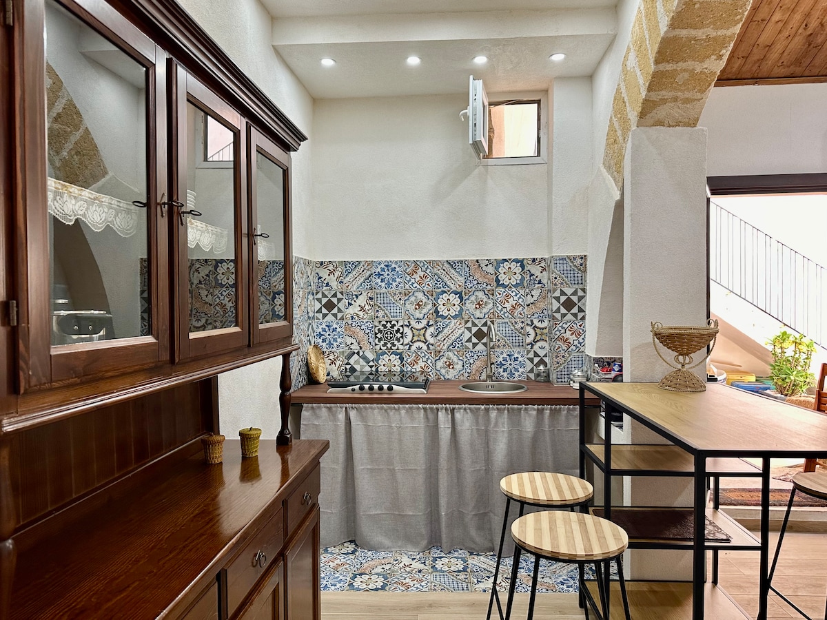 O apartamento "Al Portal", de 90 metros quadrados, está localizado no térreo de um belo edifício do início do século XIX, no coração do centro histórico de Marsala. O apartamento reflete as linhas arquitetônicas da Sicília do século XIX, com tetos abobadados e arcos em tufo, pedra típica da região de Marsala. O amplo terraço, ao qual se tem acesso pelos quartos, permite desfrutar dos belos dias de sol e tomar café da manhã ou almoçar ao ar livre em absoluta privacidade.