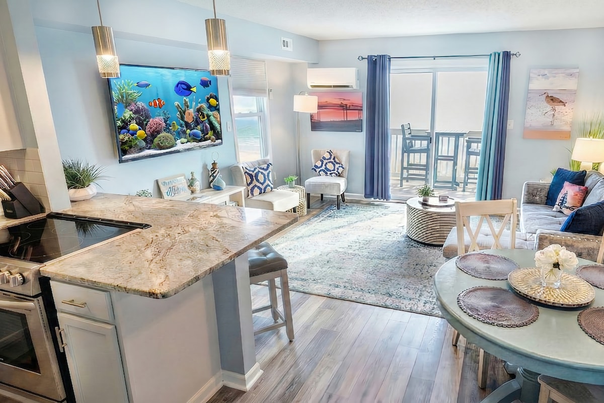 -Oceanfront - Piscina interna e banheira de hidromassagem - Caminhe até restaurantes e lojas locais - Elevador acessível e carrinhos de bagagem - Cozinha completa para cozinhar refeições - Wi-Fi rápido e TVs com streaming - Casa totalmente abastecida: roupa de cama limpa, toalhas, papel higiênico, toalhas de papel e muito mais! **2026 hóspedes: Nossa piscina e banheira de hidromassagem estão em processo de renovação e estarão fechadas durante sua estadia. Eles vão reabrir após o Memorial Day**