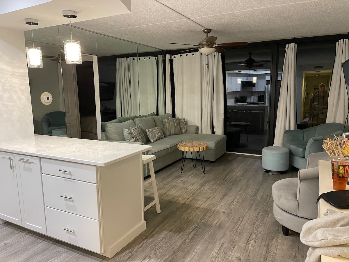 TODOS OS CONFORTOS DE CASA NA PRAIA! BANHEIROS NOVOS E RENOVADOS! -TODAS AS ROUPAS DE CAMA INCLUÍDAS - Sofás de reclinação elétrica confortável -65-in smart Roku TV com barra de som. - Cadeira de massagem no quarto principal - Balcão e área de jantar com vista para o mar e a baía - In-unit W/D -Muitas tomadas convencionais e USB -Arcade level apresenta b-ball hoop, mesas de bilhar, pingue-pongue, shuffleboard, air-hockey - Quadra de tênis ao ar livre - Grandes piscinas internas aquecidas - pode nadar em voltas completas -Sauna e academia -Jogos de tabuleiro na unidade - Wi-Fi rápido