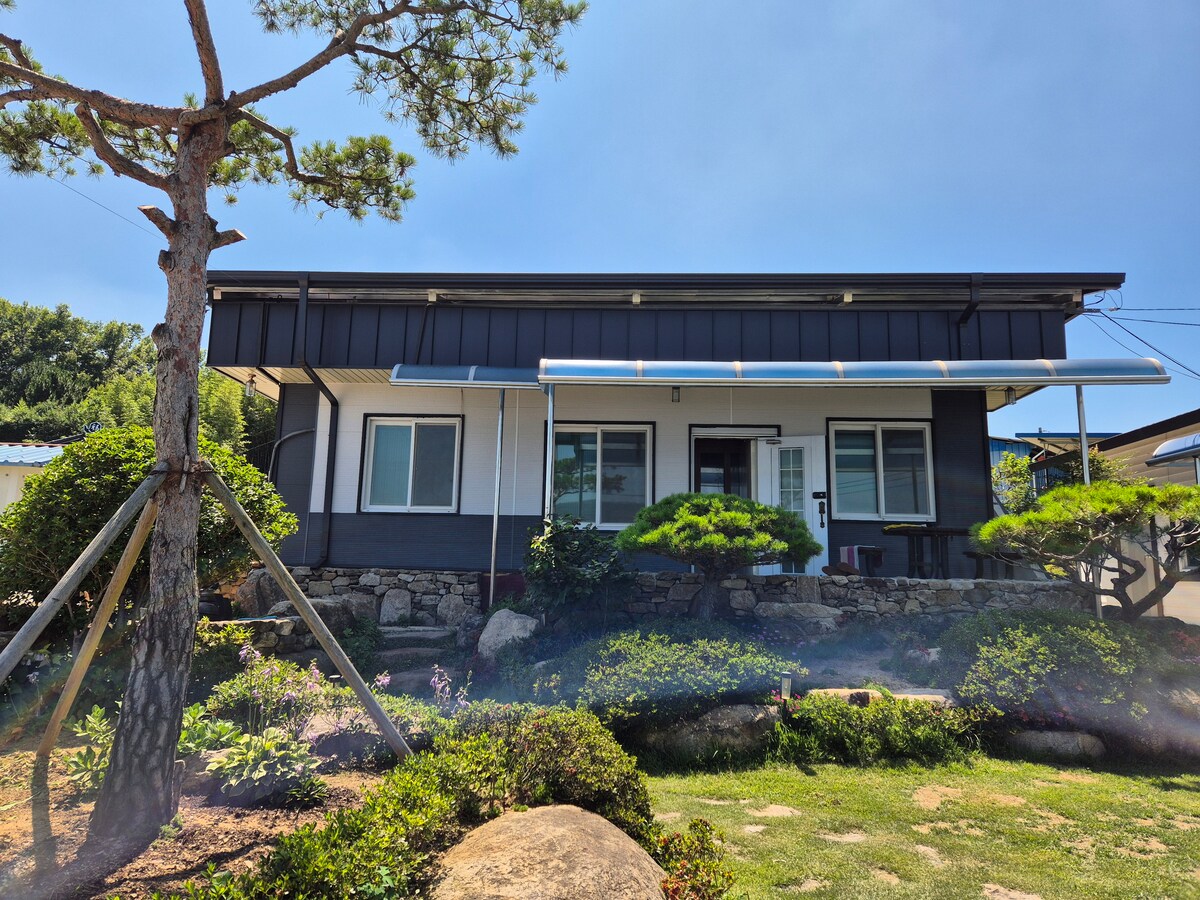 한국의 산토리니 일출과 일몰의 아름다움을 모두 느낄수있는 곳 반려견과 함꼐할수있는 온전한 가족모두모여 작은 텃밭과 과실수로 건강한 밥상은 덤입니다♡♡♡