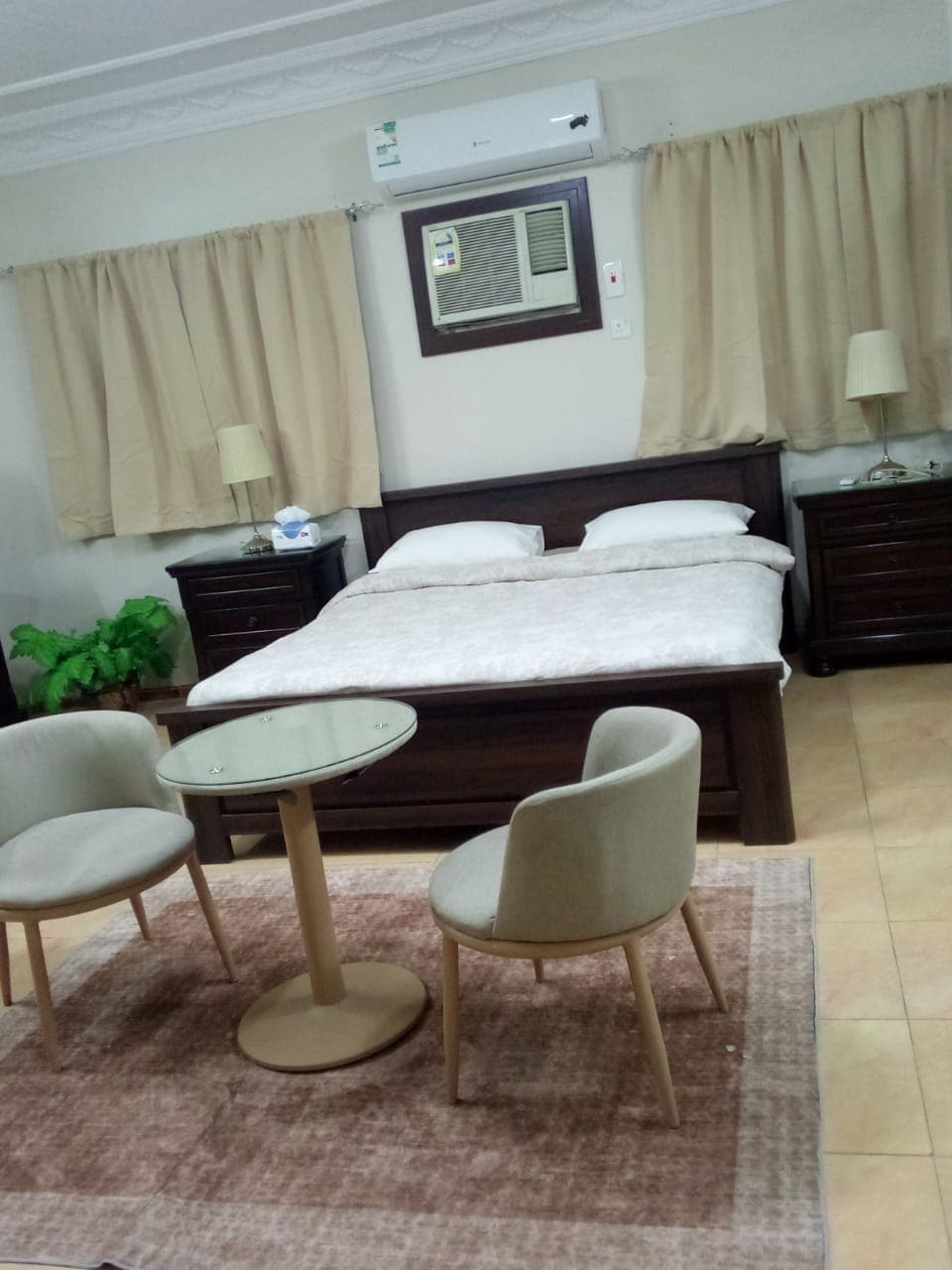 A 5 km do Haram de Makkah, com garantia de tranquilidade e limpeza interna e externa do edifício (há um elevador), internet, TV, máquina de lavar, pequena cozinha, banheiro privativo, sala de estar, sala externa, mesa de jantar e tudo o que você precisa Este confortável quarto está localizado a 5 km das mesquitas sagradas em uma área tranquila de Makkah, mas perto de muitas áreas de serviços, shopping center Alhijaz, mercearias, mesquitas e muitos outros Há restaurantes nas proximidades O café da manhã e o serviço de lavanderia estão disponíveis por um custo adicional.