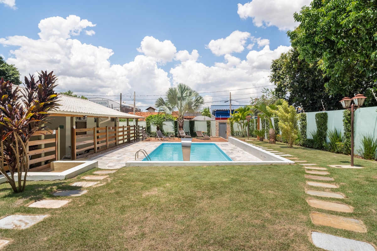 Ótima casa com área de lazer, 300 metros quadrados a 3 min do centro com água quente central, piscina aquecida, 3 ar condicionados, tv smart 55 polegadas com home theater, forno elétrico, microondas, jacuzzi aquecida com tv no banheiro, torre quente, geladeira side by side, churrasqueira motorizada, lava e seca LG, câmeras, cerca elétrica, alarme, portão motorizado, garagem coberta 3 carros. 2 tvs, uma na jacuzzi e outra na sala, internet de alta velocidade.