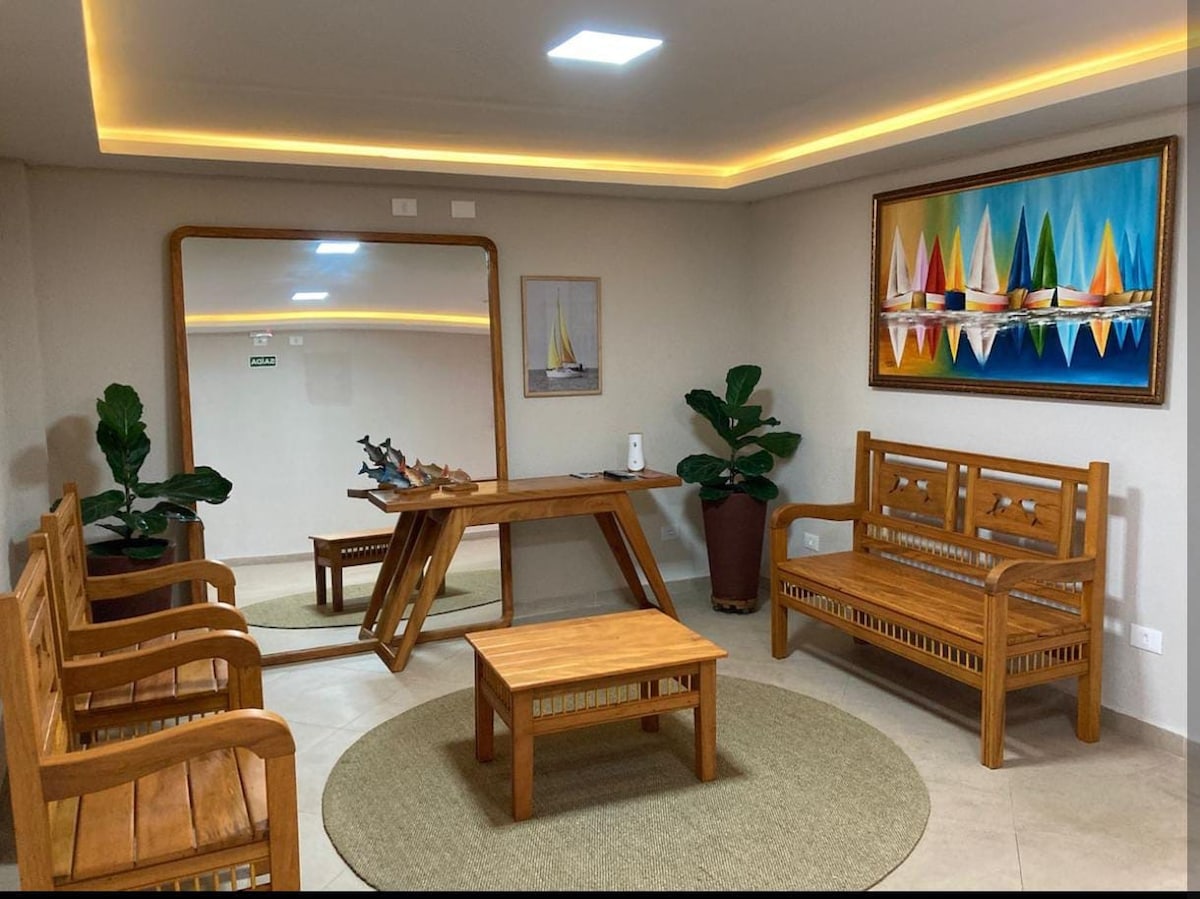 Viva momentos inesquecíveis neste lugar único e ideal para famílias e amigos Studio de frente para o mar, cozinha completa, mesa de jantar, sacada com churrasqueira, ar condicionado, TV smart e Wi-Fi. Um banheiro e mais um lavabo. Acomoda até 8 pessoas. Garagem coberta para 2 carros. Quatro cadeiras de praia e 2 guarda-sol “Não fornecemos travesseiros, roupas de cama e banho.” Para checkin entre 20H até 08H será cobrado taxa de R$ 150,00.