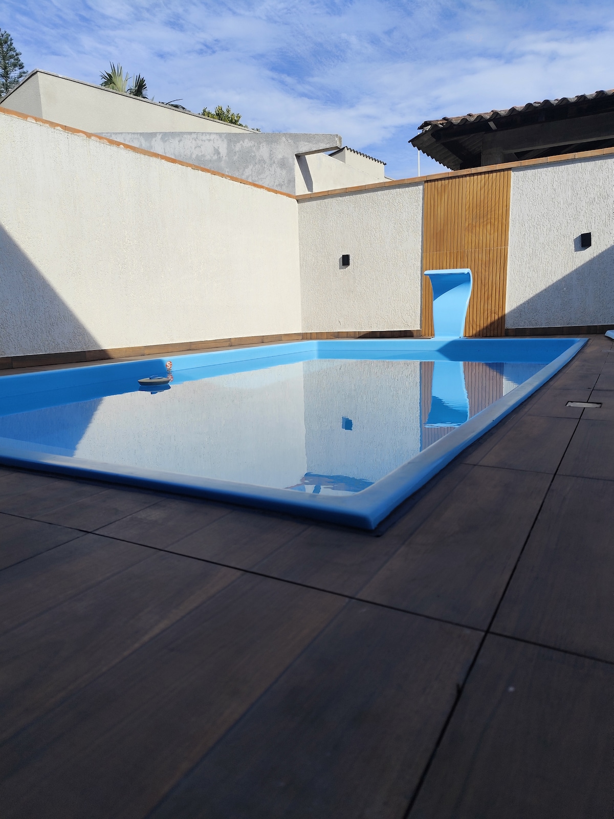Casa nova, na Rua Telêmaco Borba 853, Balneário Riviera/ Matinhos-Pr, terreno 12x30, individual, piscina grande, led, cascata e hidromassagem. Garagem gratuita e coberta para 4 carros. Fica a 550m da praia. O Balneário Riviera está na Área revitalizada da orla e a 3km do Centro da cidade de Matinhos. A 4km do Balneário de Caiobá, da Praia Mansa. Tem restaurantes, supermercados, farmácias, postos de gasolinas, confeitarias, lanchonetes, Unidade de Saúde 24 hs a 1km de distância, entre outros.