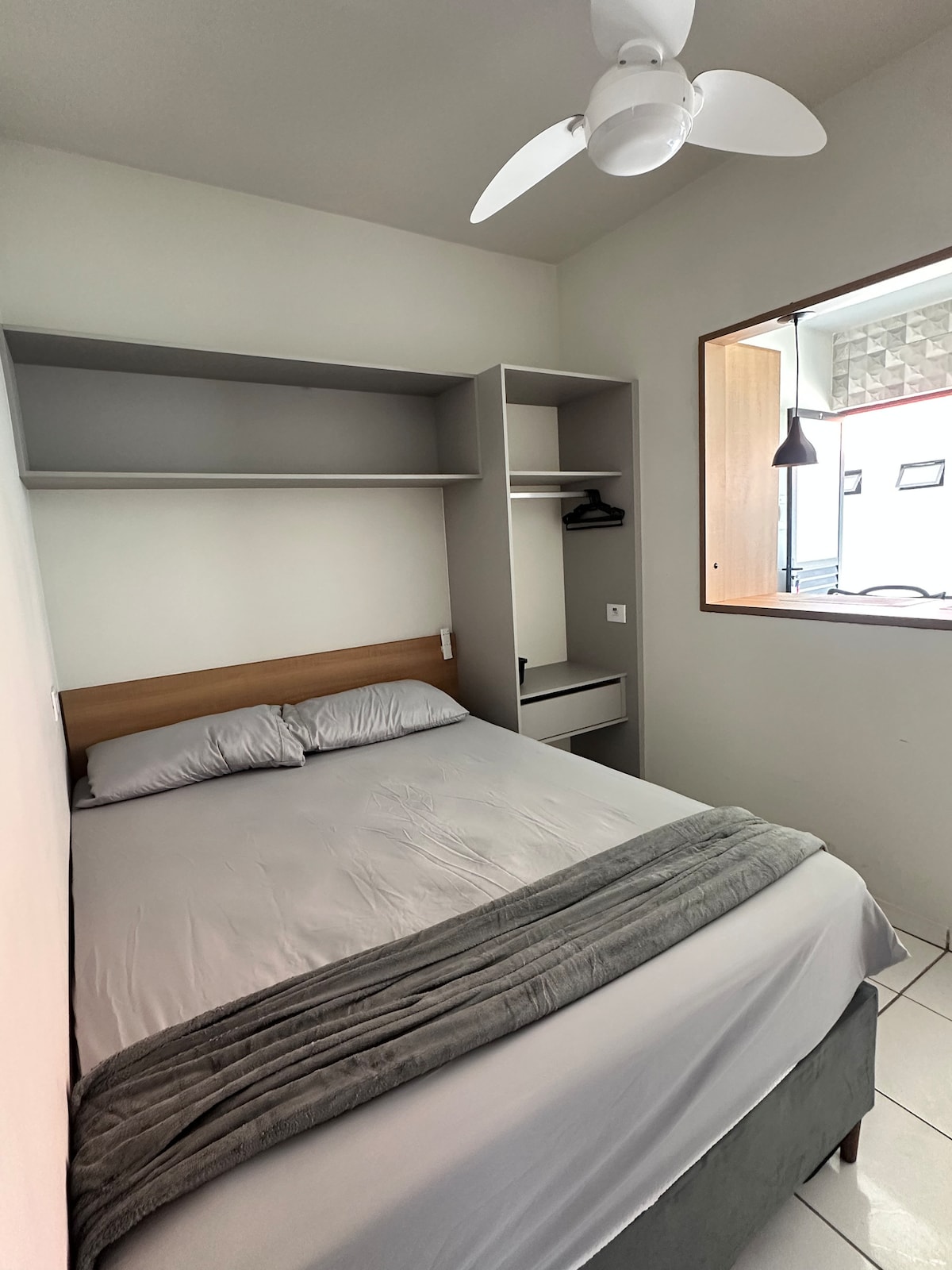 AP tipo Studio, ambiente pequeno e aconchegante com internet WiFi! Por ser no último andar, possui escadas! Até 7 pessoas. Valores adicionais a partir da 2ª até a 7ª pessoa. Condomínio possui: Piscina, Play ground, Cancha, Portaria, Churrasqueiras, salão de jogos; WiFi recreativo. É necessário exame médico para uso da piscina a partir de 01/12/2025, toda 2ª feira é fechada para limpeza! Fechadura digital com senha informada pela anfitriã. Não fornecemos roupas de cama e banho.