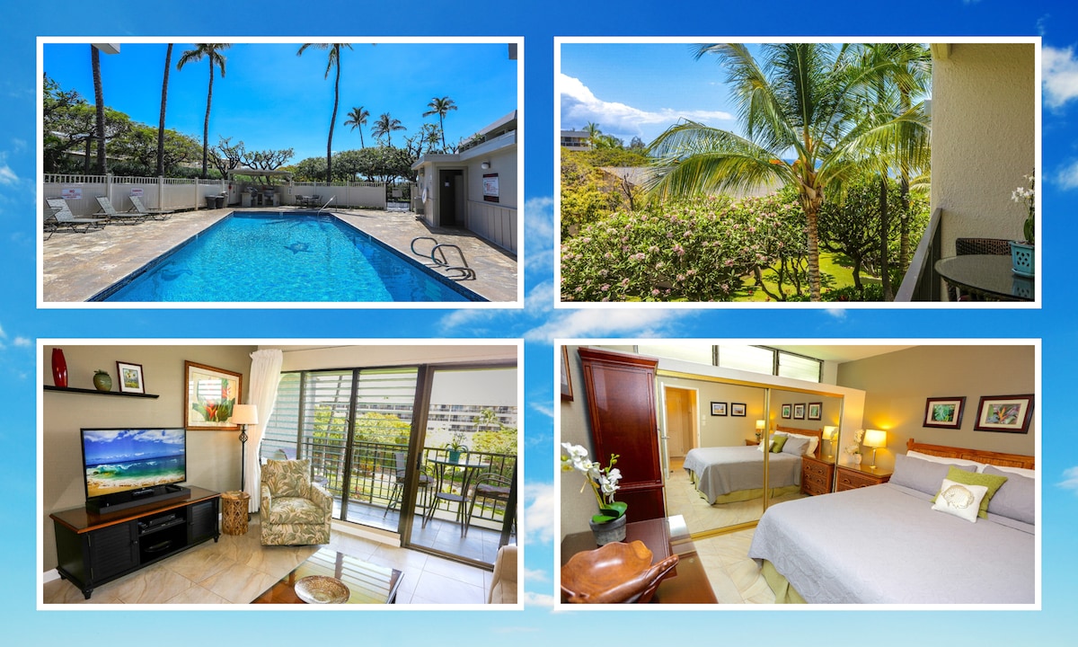 Luxuoso apartamento de 1 quarto e 2 banheiros que foi totalmente renovado. Nosso apartamento tem vistas encantadoras para o mar, bem como vistas para os exuberantes jardins tropicais e a piscina. Tem uma cozinha gourmet totalmente abastecida com eletrodomésticos de alta qualidade, especiarias variadas, café e chá. As vistas do pôr do sol do Lanai são deslumbrantes. Se o nosso apartamento não estiver disponível durante os dias da sua viagem, verifique a disponibilidade no nosso outro apartamento Wailea Palms em https://www.airbnb.com/rooms/1728525 Não é adequado para crianças ou bebês.