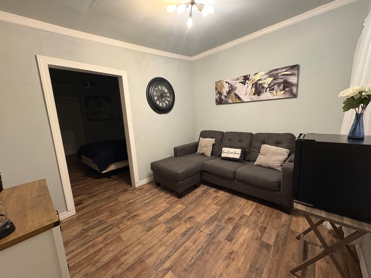 Relaxe e relaxe neste estúdio calmo e elegante. Uma construção nova com um layout de conceito aberto com pé direito alto e luz solar natural faz com que pareça espaçosa e confortável. Uma cozinha completa e uma área de lavanderia com eletrodomésticos novos a tornam ainda mais atraente. O destaque do estúdio é o espaçoso chuveiro de azulejos com área de estar. O estúdio está localizado em uma propriedade privada cercada e inclui uma pequena varanda na frente e um quintal modesto para relaxar à noite.