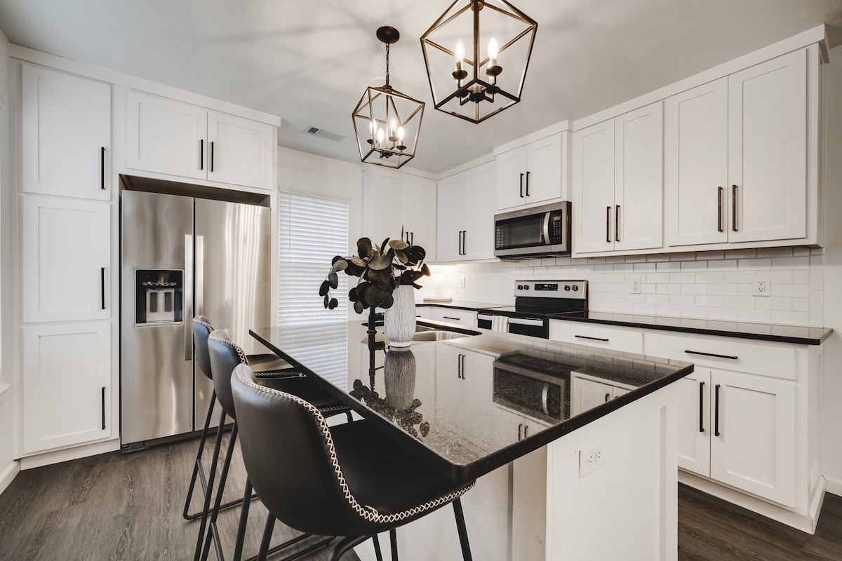 Este encantador centro da cidade é limpo com um plano de piso aberto relaxante acomoda 6 pessoas, 1 cama queen size 1 cama completa e sofá-cama. A casa é perfeita para casais, aventuras individuais, famílias e viajantes de negócios. Tudo o que você precisa está aqui com uma cozinha totalmente equipada e atualizada, roupas de cama, produtos de higiene pessoal básicos, aquecimento e ar central, Internet sem fio com TV de tela plana Wi-Fi, lavadora/secadora e equipamento de passar roupa.