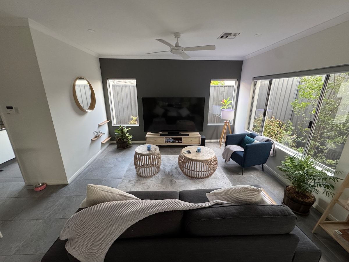 Área de estar/cozinha com azulejos claros e brilhantes, quarto queen size, enorme BIR. Lavanderia e banheiro totalmente equipados. Ar-condicionado. Estacionamento gratuito na rua, sem limite de tempo. 10 minutos a pé até as faixas de Café de Leederville ou Subiaco. Menos de 1 km das principais rodovias. 3 linhas de trem a 15 minutos a pé de Fremantle (Rottnest), Aeroporto (High Wycombe), Joondalup. “Granny flat” tem entrada própria, isolada da casa principal para total privacidade. Parede compartilhada (como morar em apartamento). Bela vista para um lago, famosos cisnes negros e vida selvagem.