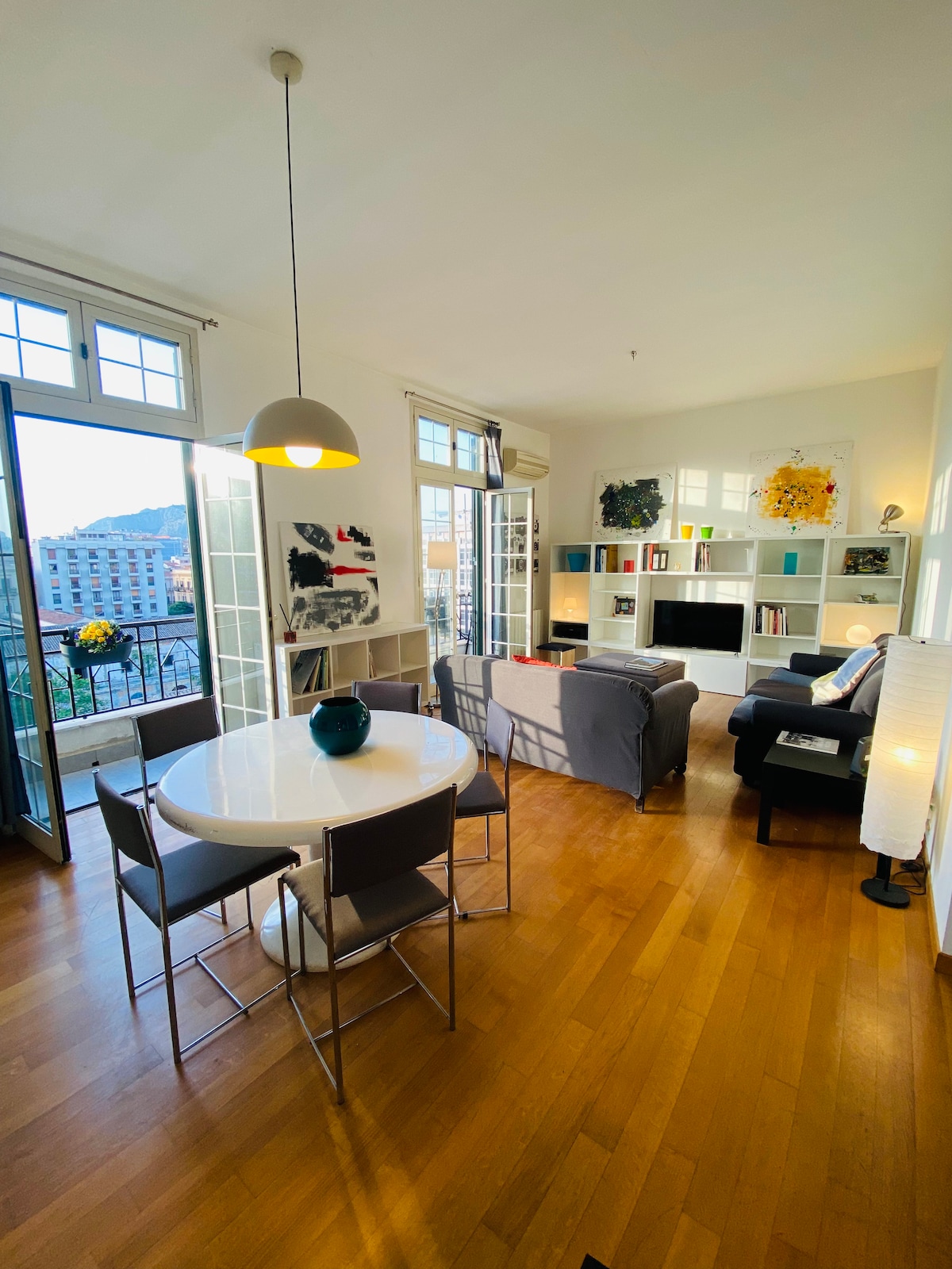 Apartamento super centralizado no topo de um palácio no coração de Kalsa, o bairro mais badalado do centro histórico de Palermo. Se você conseguir subir o 4º andar de escadas íngremes (sem elevador), valerá a pena! O apartamento foi totalmente renovado por mim, arquiteto romano que depois de 10 anos de prática em Londres decidiu se mudar para Palermo e abrir um estúdio aqui. O apartamento tem 2 belos terraços, 1 quarto, 1 grande sala de estar com cozinha, um escritório e 1 banheiro.