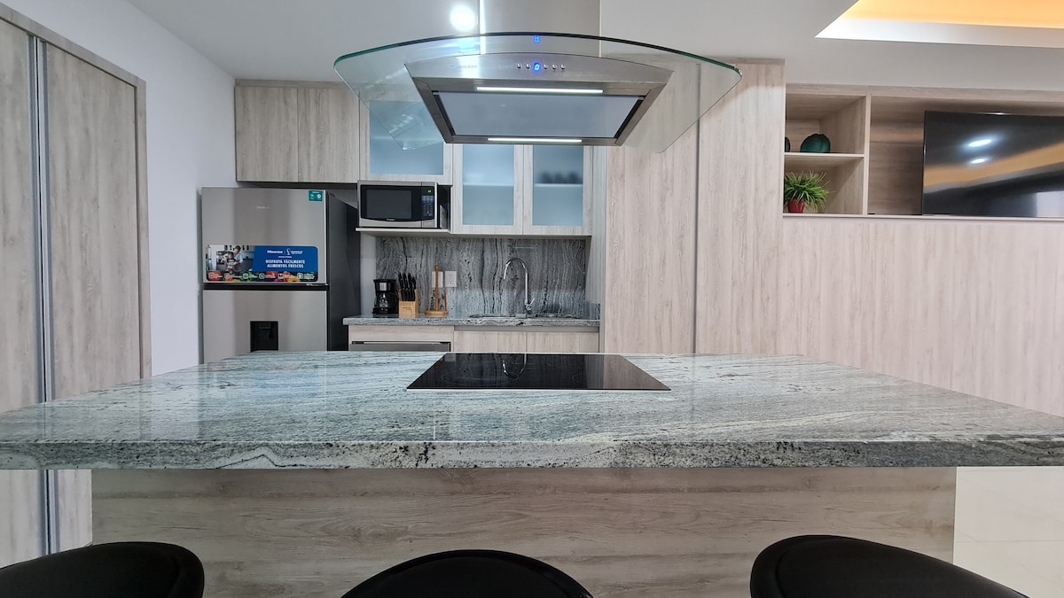 O condomínio é muito seguro e tem grandes espaços em todas as suas áreas, localizado bem em frente à praia, na esplanada (onde o icônico carnaval acontece). Estando localizado no décimo quinto andar, você pode desfrutar de uma bela vista e dos belos entardeceres que ao lado das 3 ilhas nos dão uma experiência inesquecível. A praia localizada na frente tem palapas com variedade de frutos do mar, peixes e outras especialidades locais, além de bebidas refrescantes.