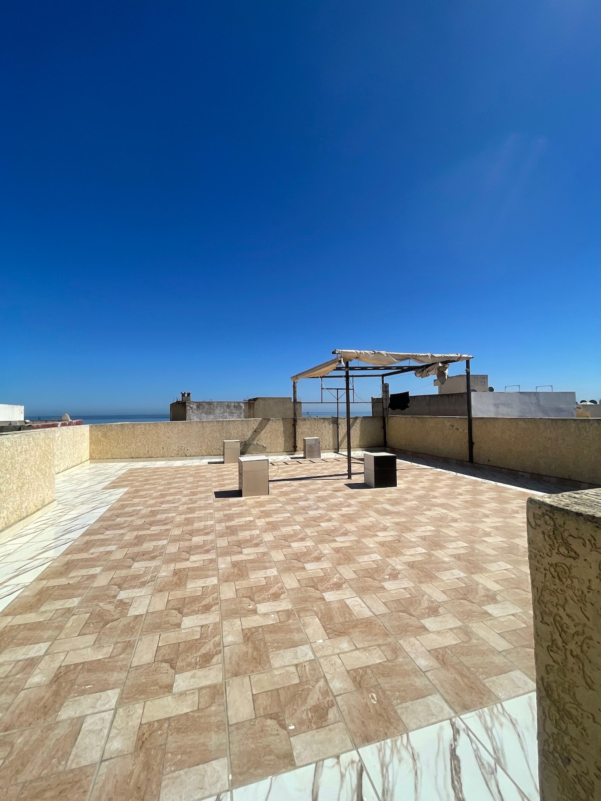 ✨O apartamento panorâmico no Les Jardins Bleus é caracterizado pelo seu design moderno e elegante, cada elemento sendo cuidadosamente projetado para garantir uma experiência inigualável ✨Localização central ✅ Apartamento com vista panorâmica para o mar e perto de: ✅ 1 min da praia de Martil 🏖 e sua famosa Corniche ✅ 5 min para a praia de Cabo Negro 🏝 ✅ 4 min da Ikea e KFC 🍗 ✅ 6 min de Marjane e McDonald's 🍟 ✅ 1 min para restaurantes, cafés, lojas