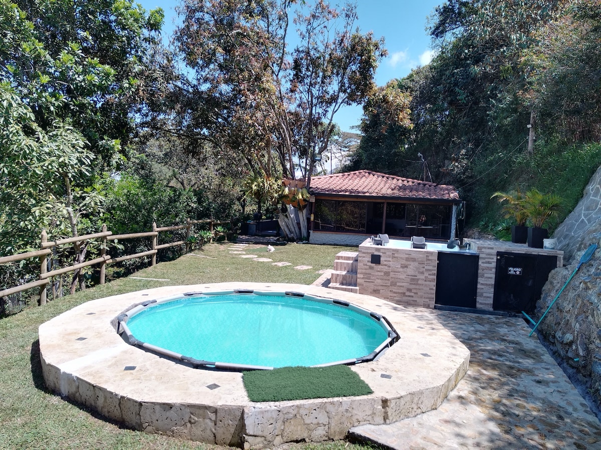 Alojamento no campo, mas a apenas 15 minutos da área urbana de Medellín (10 quilômetros)é cercado por flores e vegetais, você pode respirar ar fresco. Observação de pássaros. Possui cozinha equipada com chuveiro quente também possui área verde, piscina, banho turco, jacuzzi familiar. Está localizado a 35 minutos do centro de Medellín de carro particular. É um lugar mágico, tranquilo, seguro, onde você pode viver experiências em lugares próximos: caminhadas, reserva de moral, valdias parapente a 20 minutos de distância