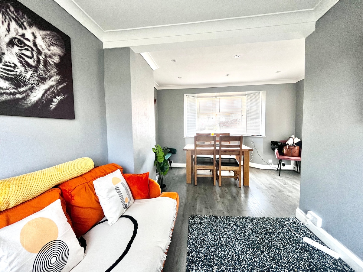 Bem-vindo a esta casa moderna em Rainham, Kent. Perfeito para qualquer estadia - lazer, trabalho, visita a família/amigos e atrações locais. Convenientemente situado perto de comodidades locais, a 5 minutos a pé da estação de trem e do centro da cidade, restaurantes, pubs, bares, lojas e muito mais. Incluindo 2 quartos espaçosos com cama de casal e king size, novo banheiro de luxo e sala de estar aberta com todos os canais de TV Virgin, Wi-Fi rápido, cozinha moderna totalmente equipada, grande jardim e uma vaga de estacionamento privativa para sua estadia.
