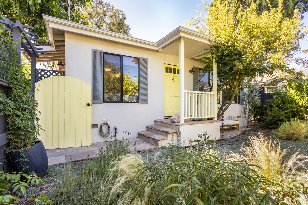 THE MEINERS DAUGHTER: ⭐️ A acomodação mais bem avaliada e mais adorada em Ojai, com mais de 630 avaliações de 5⭐️! ⭐️ NOVO SOFÁ-CAMA ⭐️ Pátio privativo: banheira de hidromassagem/sauna/rede/churrasqueira/fogueira ⭐️ Totalmente renovado/moderno, 1 quarto / 55 m² ⭐️ Vistas incríveis da montanha e do pôr do sol ⭐️ A poucos minutos do centro da cidade e do Ojai Valley Inn ⭐️ Carregador rápido para veículos elétricos (movido a energia solar) Wi-Fi ⭐️ rápido (1gps) ⭐️ Kitchenette com filtro de água de osmose reversa ⭐️ 65" 4K Sony TV / Sonos Sound ⭐️ Quarto de luxo com chuveiro romântico para casais ⭐️ Totalmente permitido, licenciado e segurado