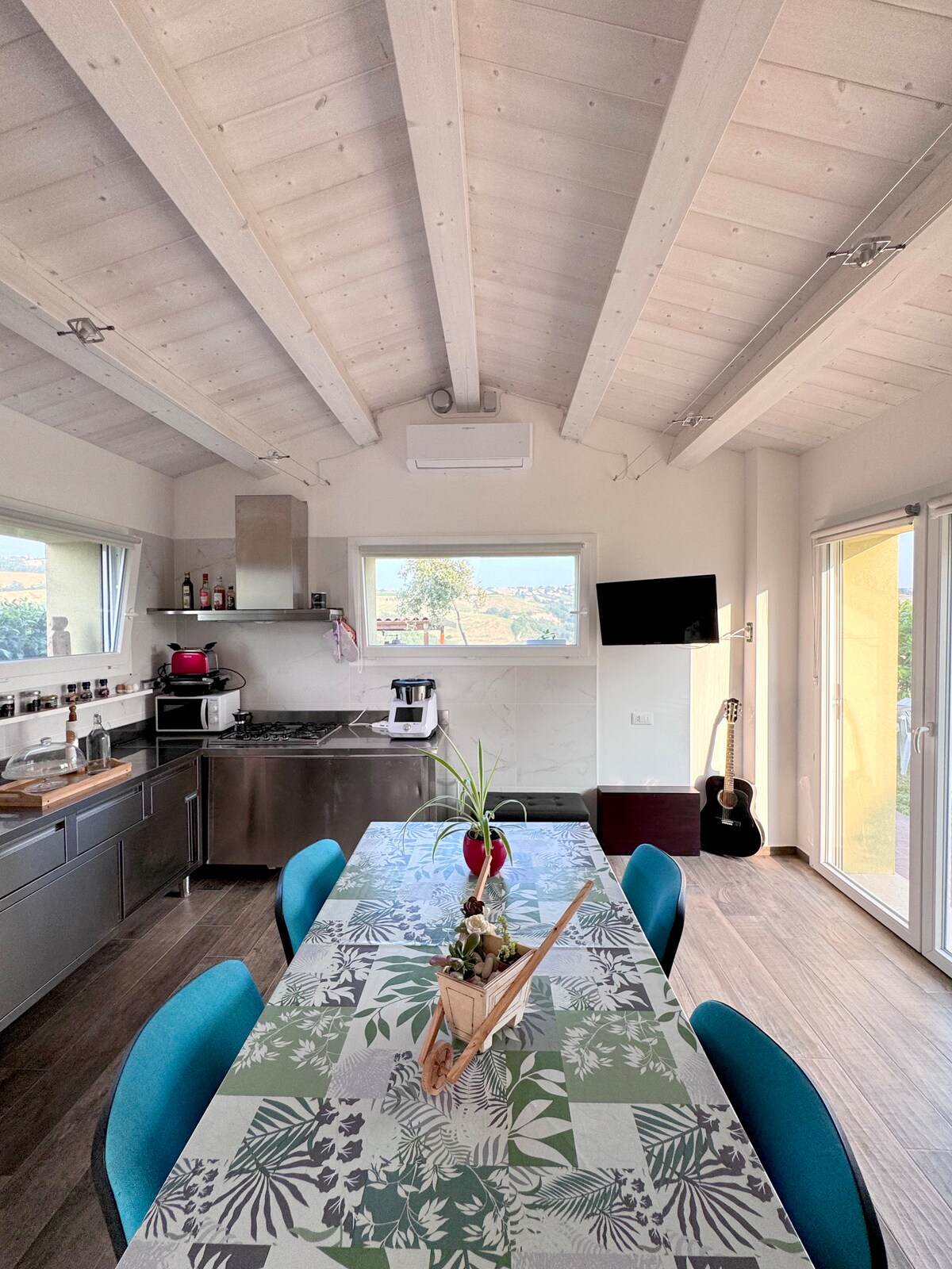 Nossa casa, reformada com materiais originais, é uma mistura de velho e novo que transmite calor e desejo de relaxamento. O chamado da natureza circundante é forte, especialmente na varanda, onde, as grandes janelas olham para uma bela vista, que em dias claros descobre o mar. Durante o verão, a piscina exclusiva, infinita, também em direção a esta bela paisagem se torna a protagonista.