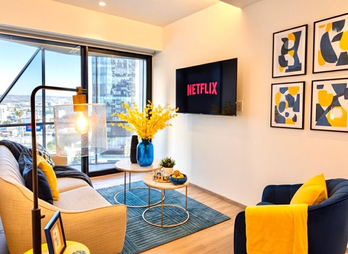Vive Tijuana desde las alturas en este estudio premium en ICON piso 16. Vista sin obstrucciones, piscina, jacuzzi, gimnasio y parking privado. Ideal para parejas, viajes de trabajo o estancias tranquilas. A minutos de Zona Río, hospitales, cafés y consulados. Seguridad 24/7 y check-in sin contacto.