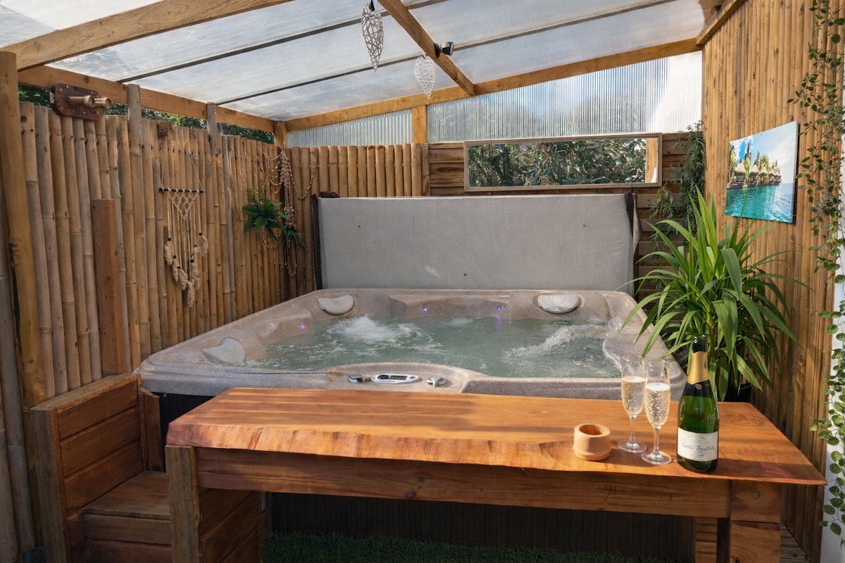EXOTIQUE & INSOLITE Et si l'essentiel etait ici ! Nichée au Coeur des Arbres Villa privée Bercé par les Etoiles & l 'océan vue sur la forêt SAUNA Infrarouge Halogène JACUZZI Bouillonnant MASSAGE à domicile salle privée Une parenthèse, Respirez, Ressentez... Ici, le temps suspend son vol, la nature vous enveloppe Chaque instant devient une invitation à lâcher prise Eveillez ses Sens Comme à l'Hôtel Draps, serviettes, savon, café... Tout est prêt et fournis Pour votre confort et bien-être