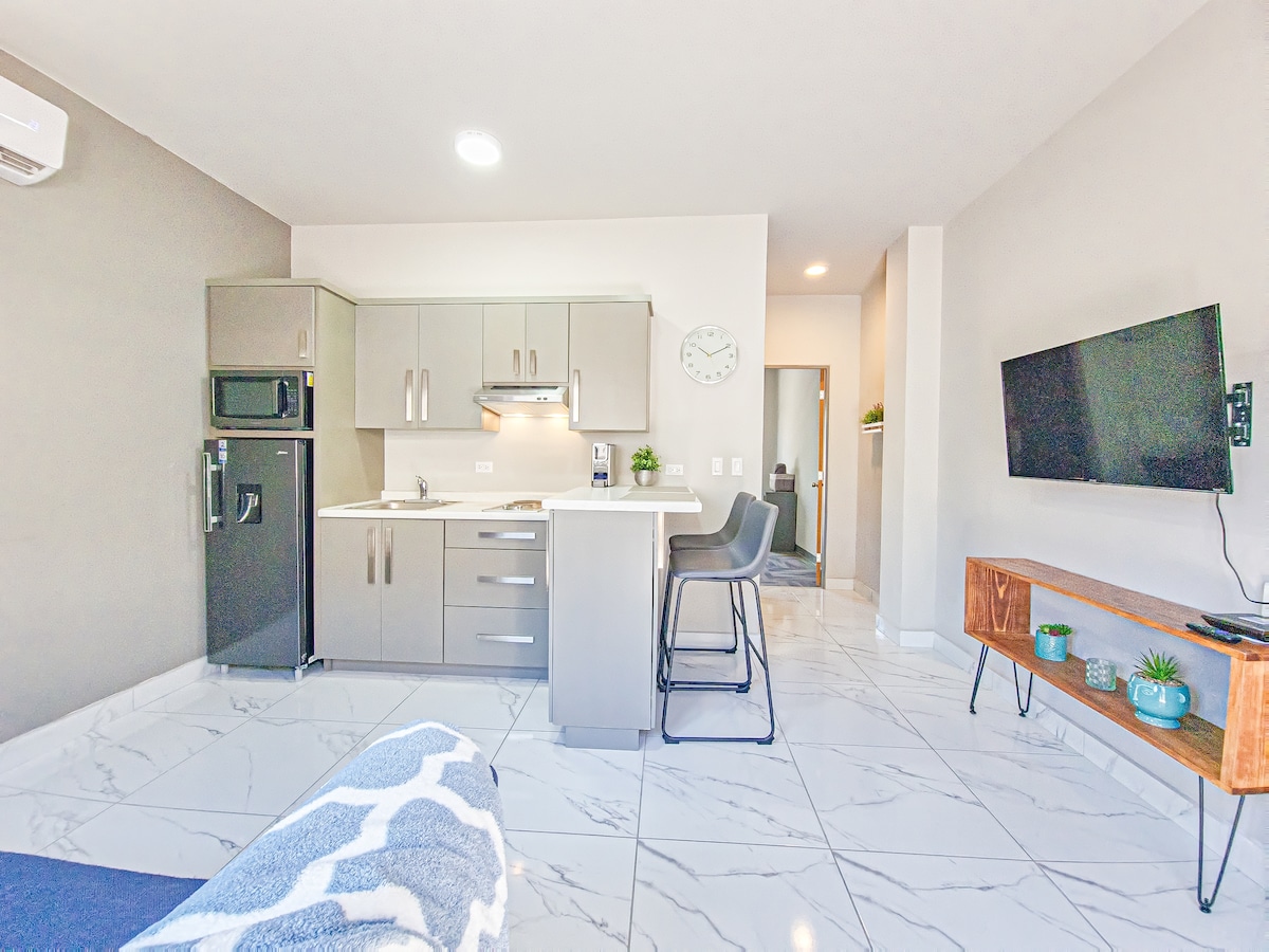 Ideal para esta série caribenha, a 5 minutos a pé do estádio, este aconchegante apartamento de 1 quarto na melhor área de Mexicali. Tem cozinha equipada, banheiro moderno, cama de casal, WIFI, televisão e acesso a máquina de lavar roupa compartilhada. Inclui estacionamento gratuito para 1 veículo. Localizado perto do estádio de beisebol, dos melhores restaurantes, lounges de festas e entretenimento. Viva no coração da Zona Dourada, com todos os confortos e um local incomparável.