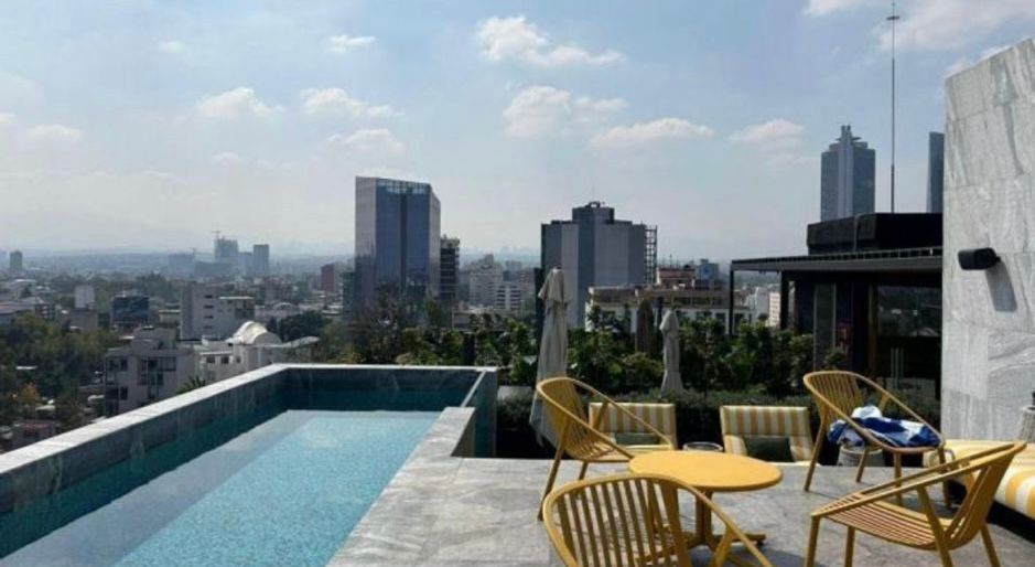Desfrute de um estúdio moderno e confortável localizado em um dos edifícios mais completos e exclusivos perto de Reforma: • Cama king-size com vista para o horizonte da cidade • Academia totalmente equipada com CrossFit e áreas de ciclismo internas • Piscina de natação e jacuzzi com vista para o horizonte • Centro de negócios e sala de eventos • Restaurantes, cafeteria e bar no edifício • Spa com sauna seca e a vapor • Apartamento inteligente novo e totalmente equipado • Perto do Paseo de la Reforma e do Parque Chapultepec •