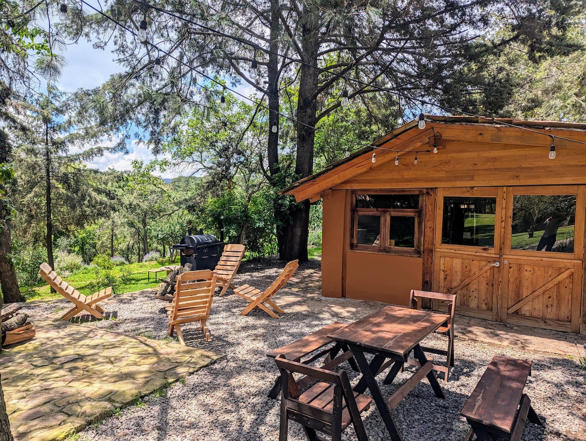 Antígua e acolhimento restaurado . Ideal para uma viagem calma e tranquila. A propriedade é uma reserva de 30 hectares de belas trilhas, árvores e as melhores paisagens para passear. Nosso projeto é ecológico e você pode aprender com as ecotecnias usadas localmente. Na propriedade temos 4 cães, um santuário de burros, galinhas, porcos, ovelhas e, às vezes, gatinhos. Não aceitamos animais de estimação para a segurança de animais de estimação e da fazenda. Incluímos lenha, carvão, tortilhas, queijo, frutas, café